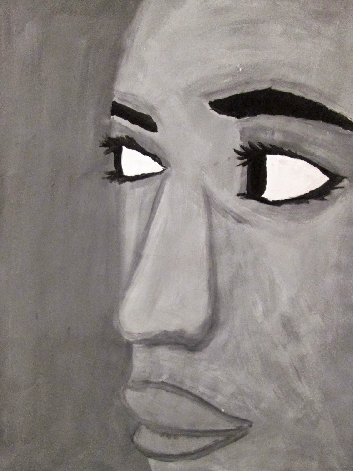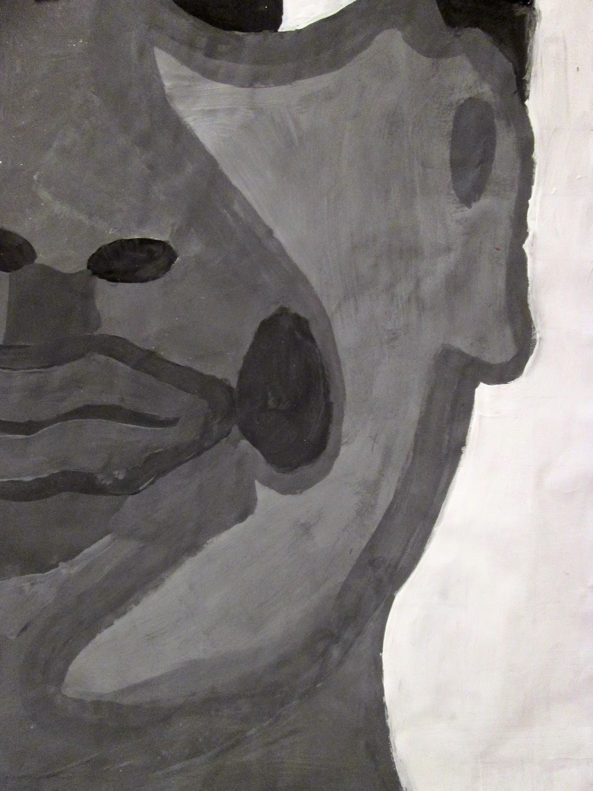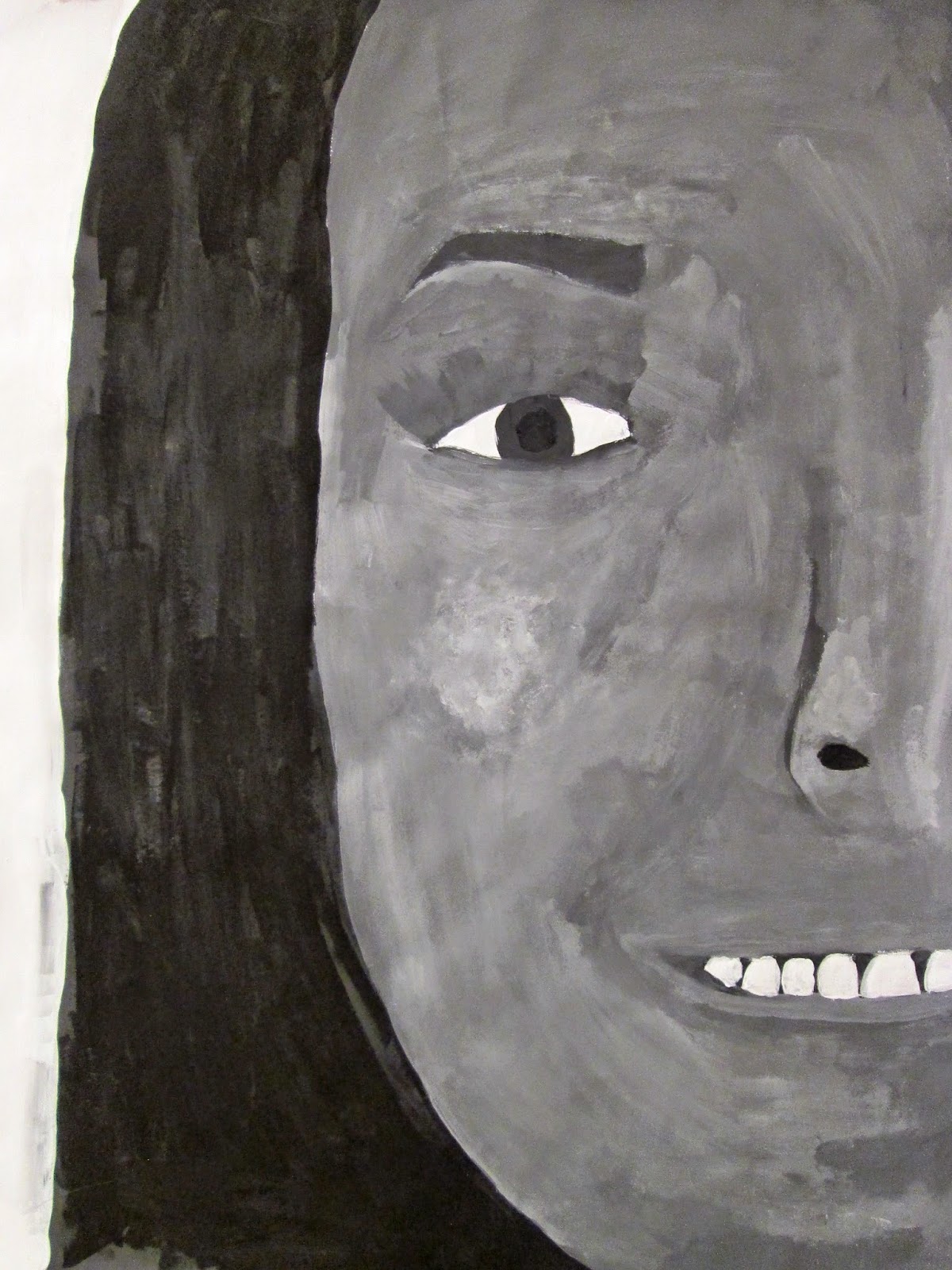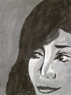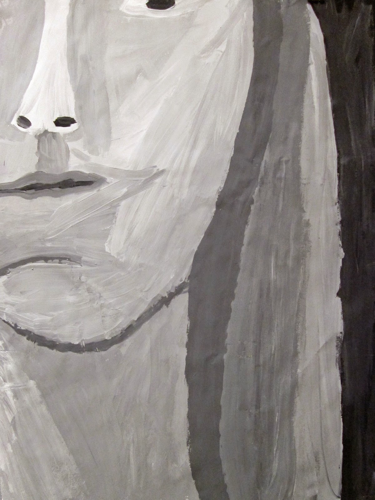 The 8th graders have been working very hard on these portraits for about two weeks. We first took photos of ourselves which we cropped in very tight on one segment of the face. Then we used a grid to enlarge the pictures to 18"X24". After that the students painted them in using a gray scale to mimic the look of our black and white photos. I am very proud of the work these students have done. The paintings turned out great. Check them out below.