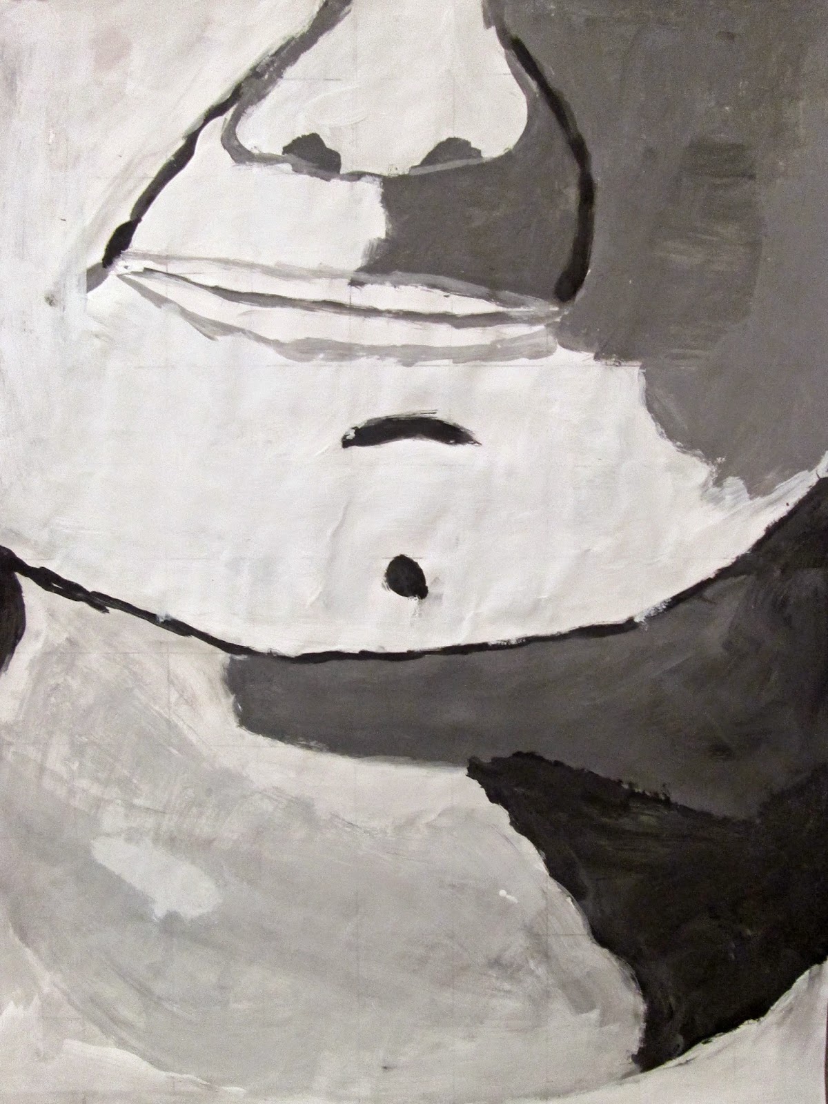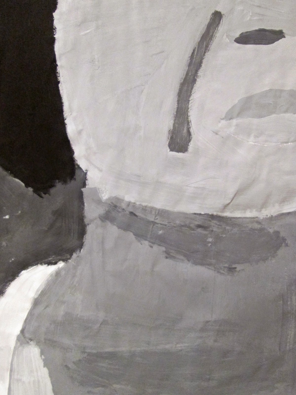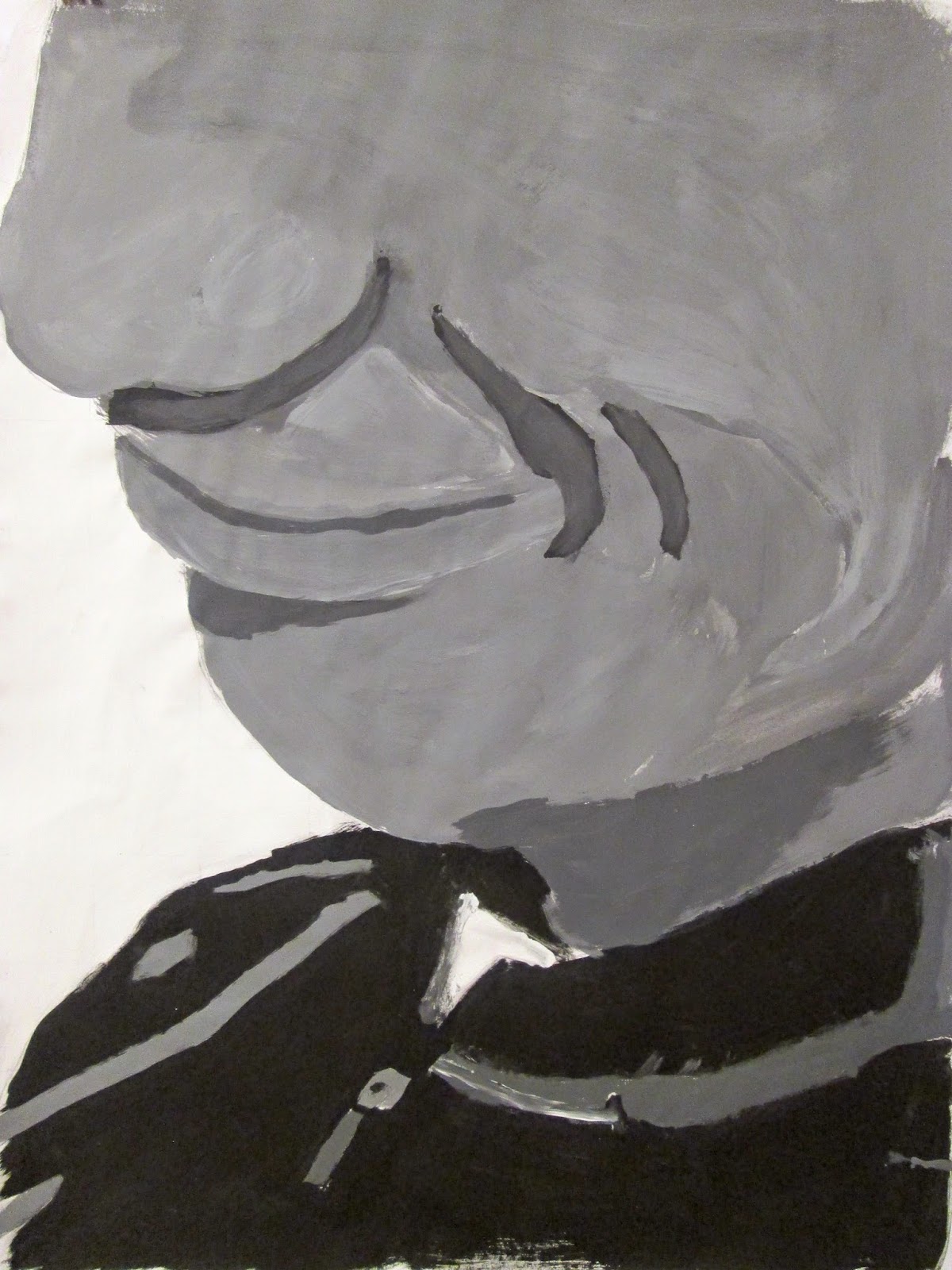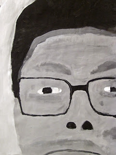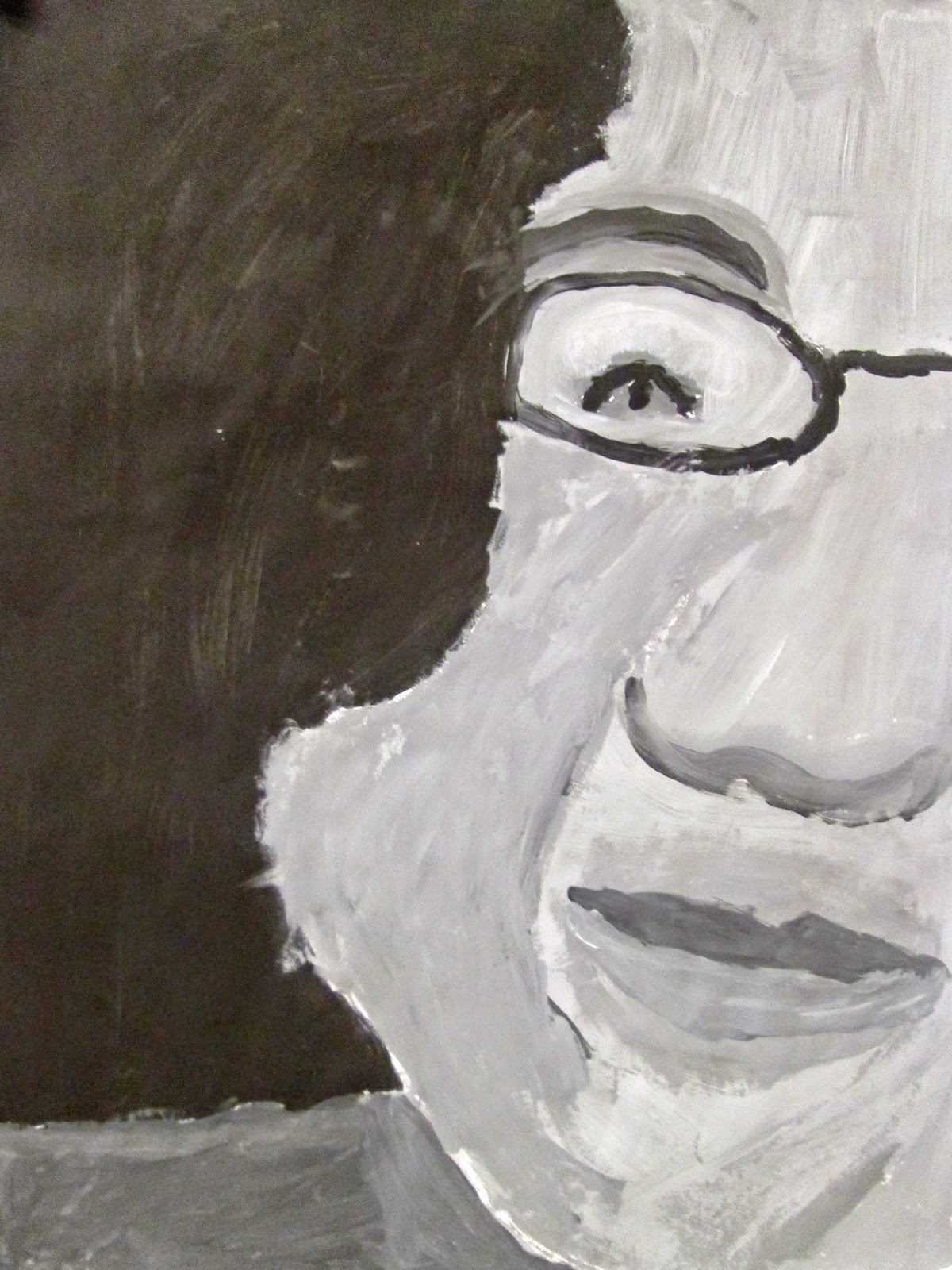 The 8th graders have been working very hard on these portraits for about two weeks. We first took photos of ourselves which we cropped in very tight on one segment of the face. Then we used a grid to enlarge the pictures to 18"X24". After that the students painted them in using a gray scale to mimic the look of our black and white photos. I am very proud of the work these students have done. The paintings turned out great. Check them out below.