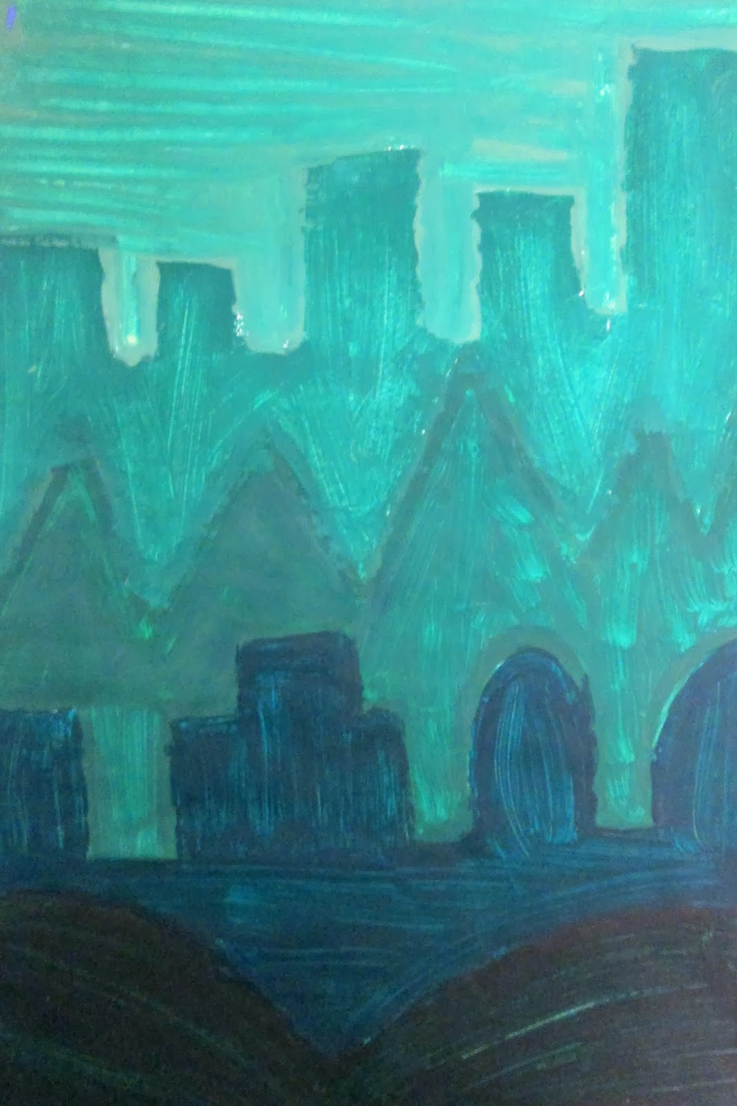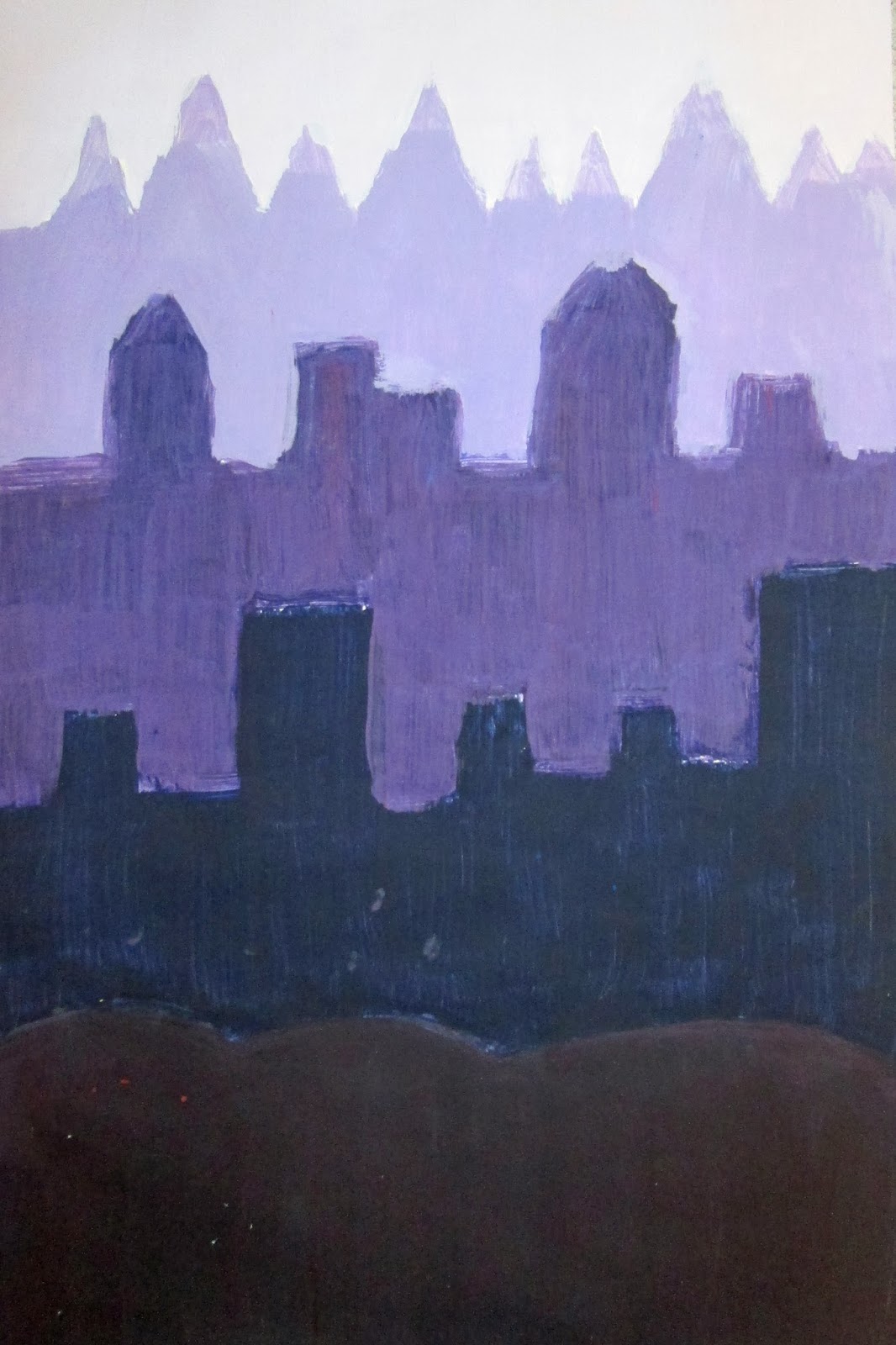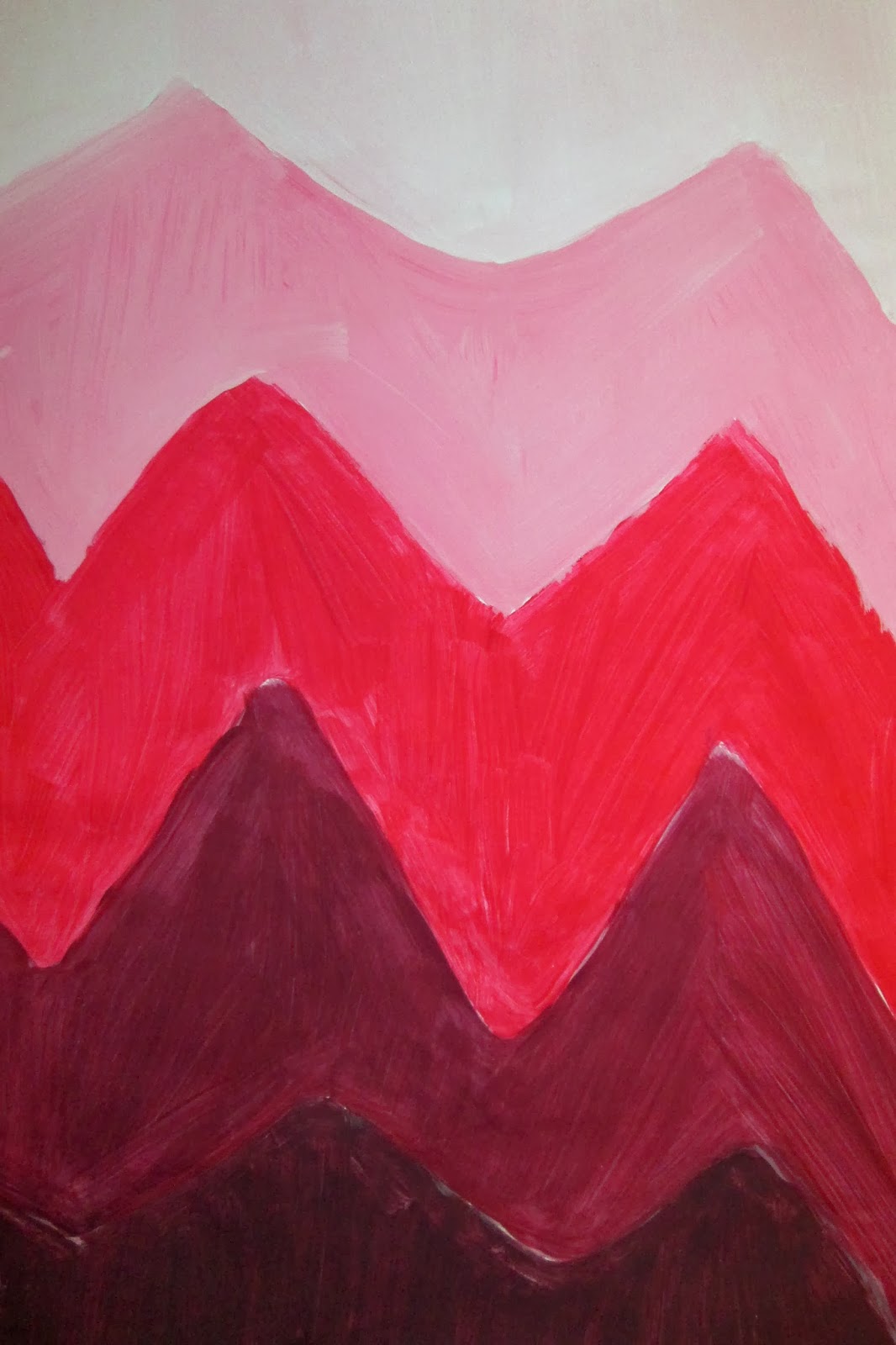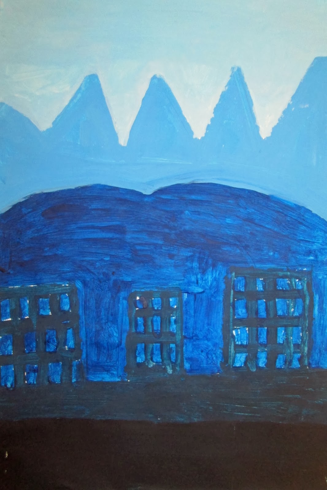 In 8th grade art we just finished a unit on value and to cap it off we created simplified landscapes that incorporated a 5 point value scale. Students drew simple layered landscapes and then painted them using 5 values (dark on the bottom------light on top). We discussed atmospheric perspective, and how colors on the horizon appear less saturated than those close to the viewer. Check them out: